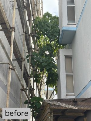 今回は、名護市にあるアパートとアパートの間に生えていた オオバギの伐採 を行いました。