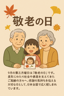 9月の第三月曜日は「敬老の日」です。長年にわたり社会や家庭を支えてきたご高齢の方々へ、感謝の気持ちを伝える大切な日として、日本全国で広く親しまれています。