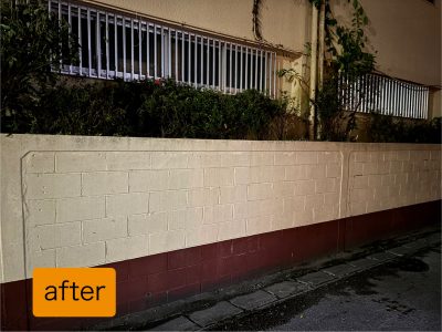 作業では、広い駐車場の雑草をエンジン式草刈り機で一気に刈り込み、外壁沿いの花壇やフェンス際の細かい部分は草削り用の手工具を使って丁寧に処理しました。特に駐車場では、草が伸びてアスファルトの割れ目を押し広げてしまうこともあるため、早めの除草が大切です。